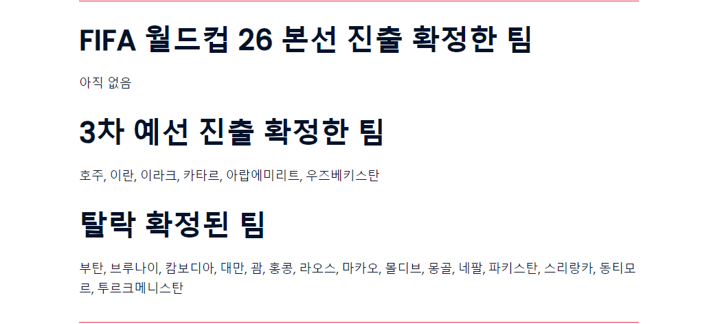 • FIFA 월드컵 26 본선 진출 확정팀, 3차 예선 진출 확정팀, 탈락 확정팀