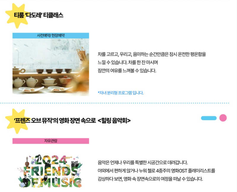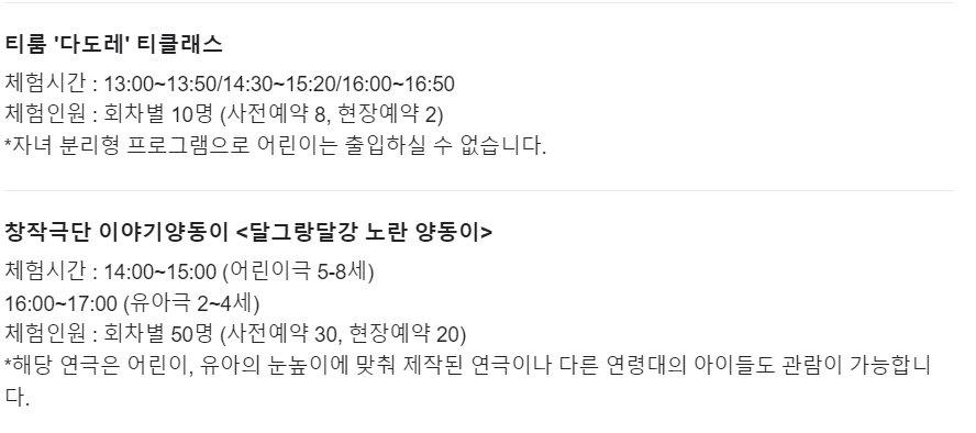 ✔️상설 프로그램과 현장 접수를 진행하는 소량의 체험 외에는 사전 신청으로 진행되고 있습니다.