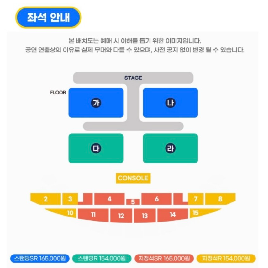 | SR석(스탠딩) | 165,000원 |