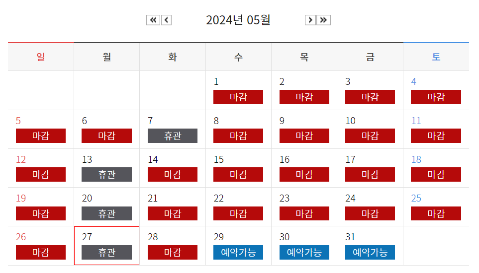 ⭕ 하루입장 가능인원은 1일 240명(20명 x 12회)으로 운영되고 있습니다.(예약 현황 바로가기)