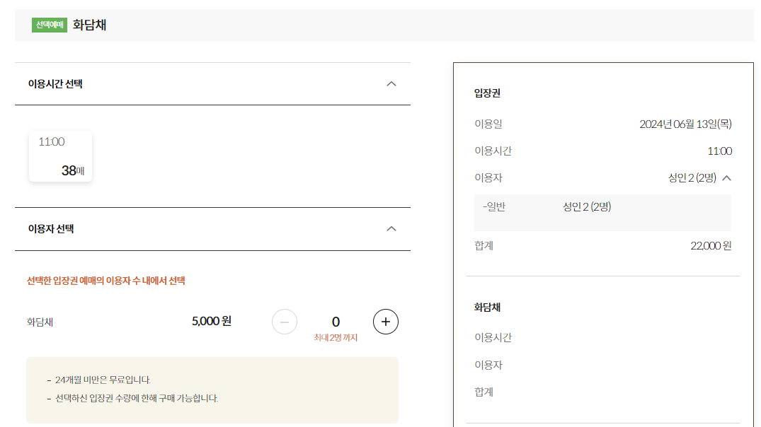 • 화담숲 입장권은 20분 간격으로 선택할 수 있습니다.