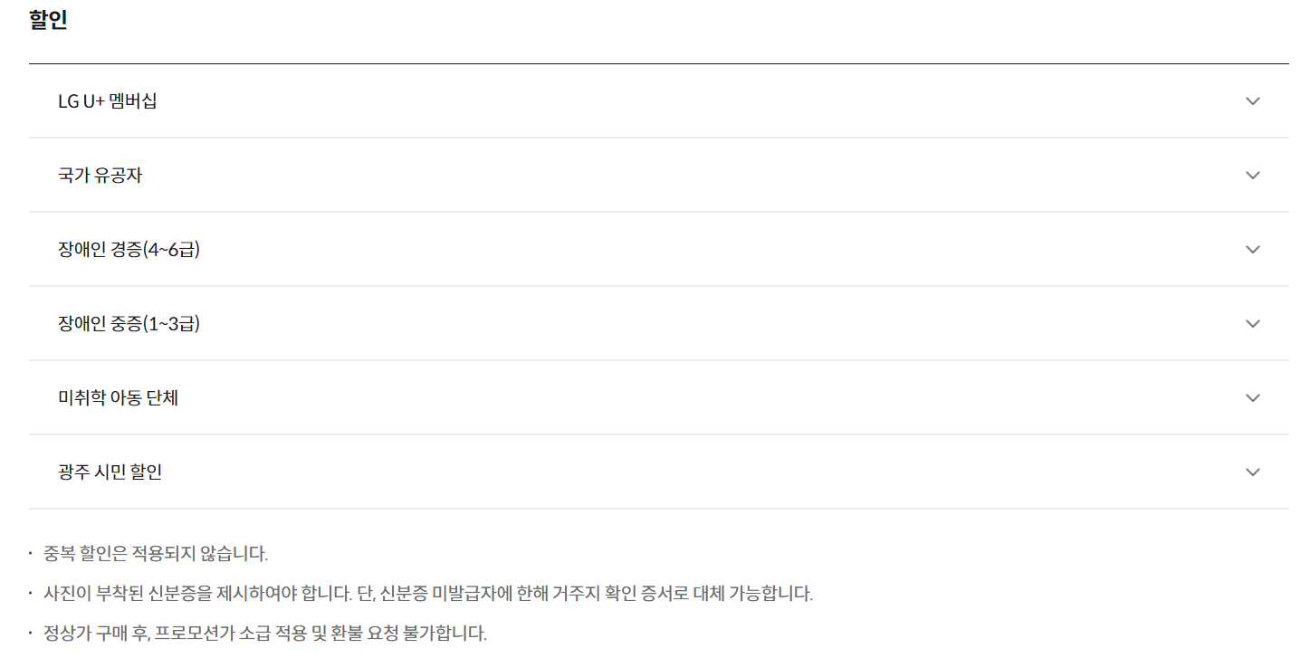 • 할인(장애인, 광주시민, 국가유공자)은 중복할인이 불가합니다. 관람객 인원 내 여러 할인 자격이 해당될 경우 각각 예매하셔야 합니다.