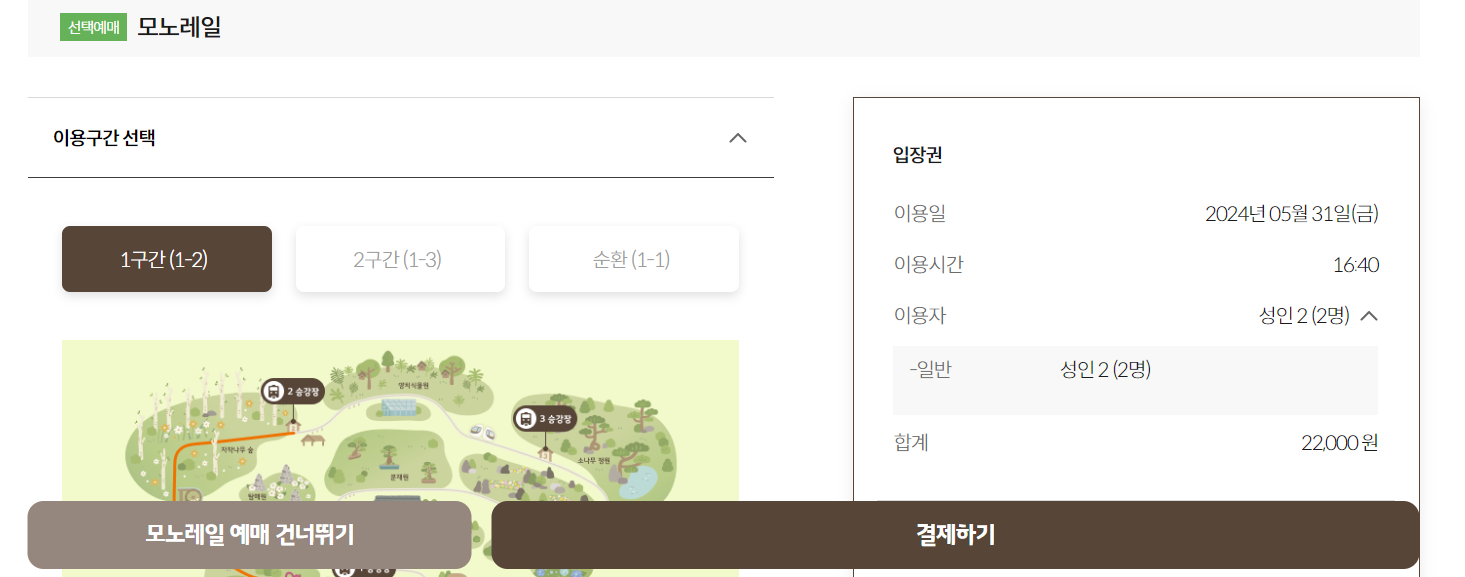 • 모노레일을 함께 예약하실 이용객은 시간을 잘 확인하시기 바랍니다.(모노레일 잔여좌석 확인하기👆)