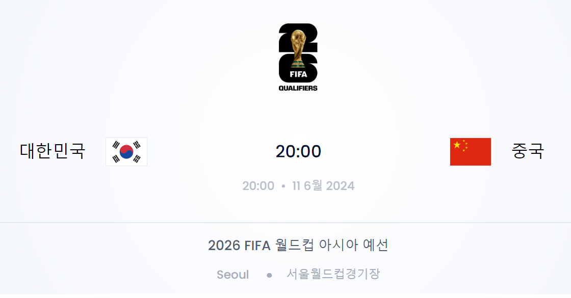 23년 11월 21일 중국과의 1차전에서 3대 0으로 완승하였습니다. 하지만 중국은 현재 C조 2위로 승점 7점을 기록하고 있습니다. 1차전에서 완승했다고 2차전도 방심할 수 없습니다. 1차전을 못보신 분들은 아래 하이라이트 영상 참고해주시면 됩니다.